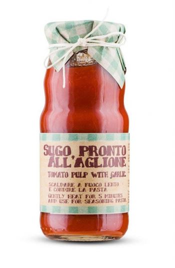 A C.di Calabria Paradicsomszósz Aglione fokhagymával egy ízletes olasz paradicsomszósz, melynek különlegessége a friss Aglione fokhagyma.