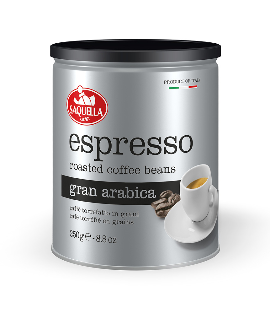 A Espresso Gran Arabica egy igazi kávé szerelmeseinek tervezett prémium minőségű termék, mely 100% arabica szemes kávét tartalmaz. A 250g-os fém csomagolás garantálja az aromák frissességét.