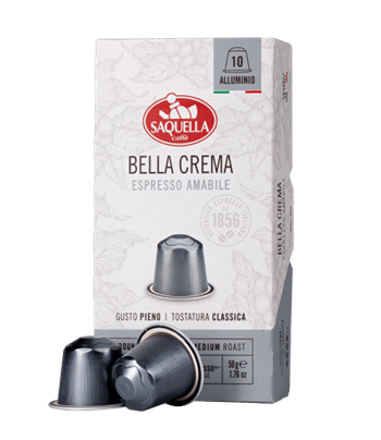 Az Saquella kapszulás kávé Bella crema egyedülállóan finom választás, melyet az olasz kávékultúra szerelmeseinek terveztek.