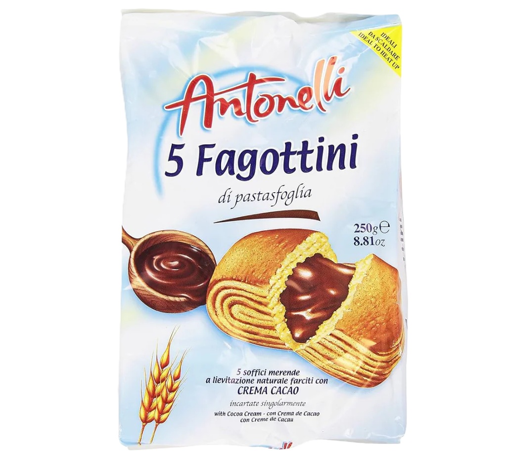 Az Antonelli Fagottini csokis gazdag csokoládé ízvilággal rendelkezik, melyet harmonikusan kiegészít a lágy tészta és krémes töltelék. Minden falat egy utazás az érzékek számára.