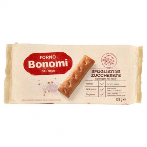 A Bonomi sfogliatine cukrozott ízvilága gazdag és intenzív, mely tökéletesen visszaadja az olasz édességek egyedülálló ízélményét. Minden falat egy utazás az olasz desszertek világába.