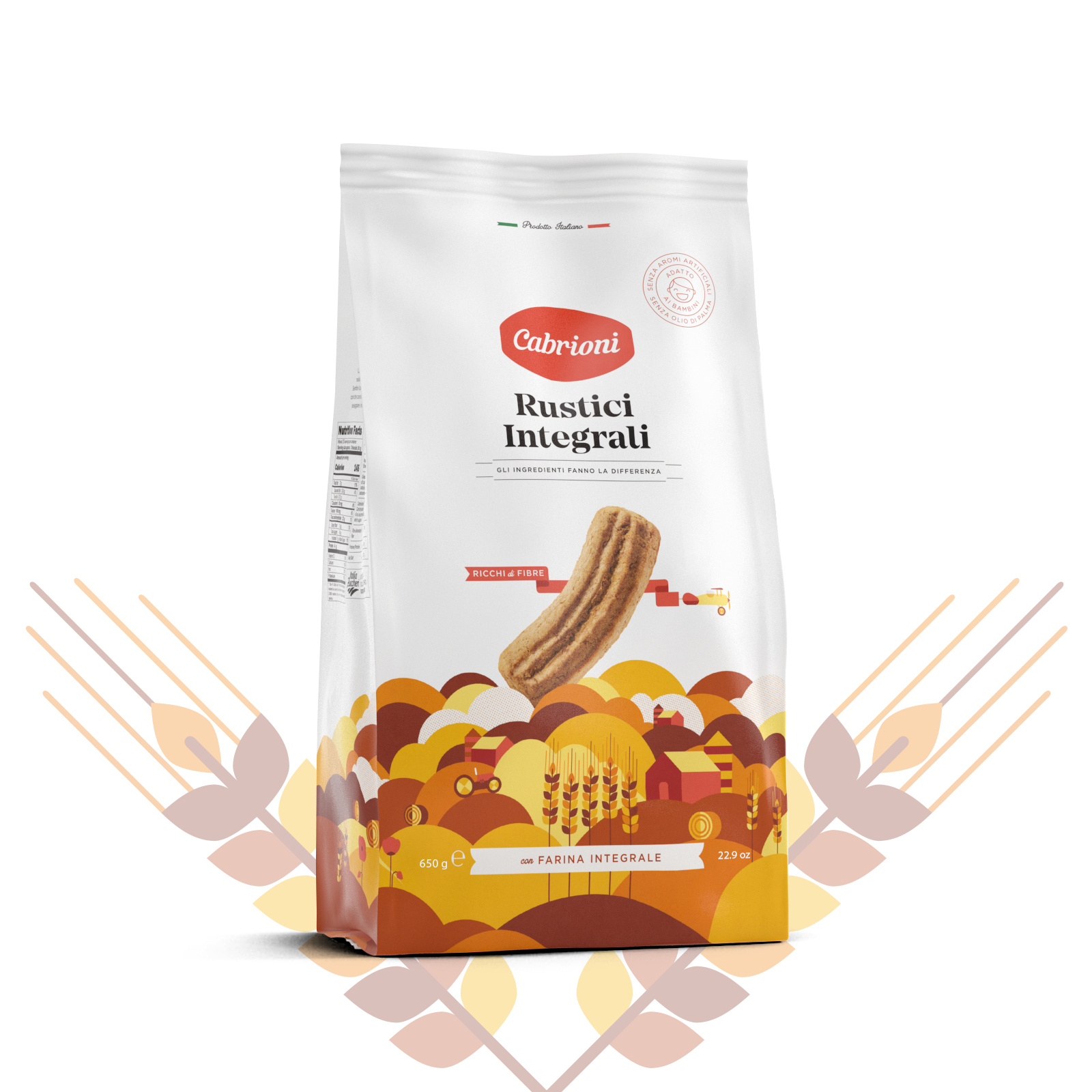 A Cabrioni Rustici teljeskiőrlésű keksz egy igazi ínyencség a reggeli vagy délutáni tea mellé, mely magában hordozza az olasz gasztronómiai kultúra esszenciáját.
