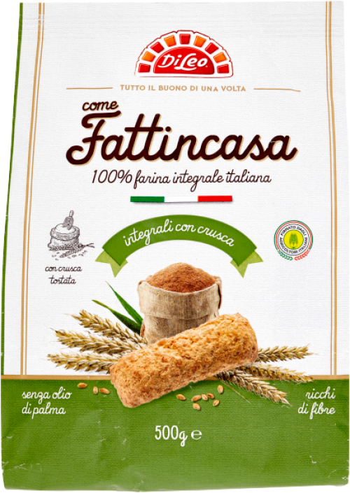 A Di Leo Fattincasa teljeskiőrlésű keksz ideális kiegészítője egy bögre cappuccino-nak vagy latte-nak, valamint tökéletes alapja lehet házi tiramisù süteménynek.