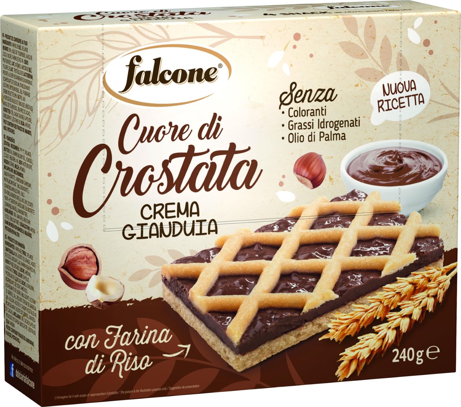 "0" típusú búzafinomliszt, melanzs (növényi olajok és zsírok (napraforgóolaj, kókuszolaj), vaj (30%), víz), porcukor, rizsliszt (4%), pasztörizált tojás, tej , aromák, búzakeményítő, tejpor, tejsavó fehérje, kelesztőanyagok (ammónium-hidrogén-karbonát, nátrium-hidrogén-karbonát), emulgeálószer ( szójalecitin), só , gianduia krémes töltelék (38%) (cukor, növényi olajok és zsírok (napraforgóolaj, kakaóvaj), mogyoró (13%), zsírszegény kakaópor, emulgeálószer (napraforgólecitin), aromák)