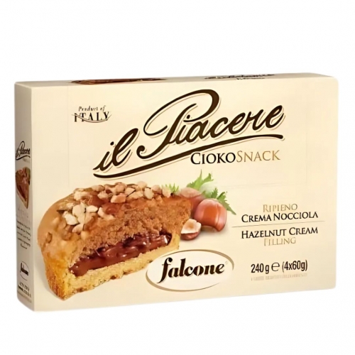 A Falcone il Piacere mogyorókrémes sütemény 4x60g egy ízletes olasz desszert, mely magában hordozza az olasz gasztronómia varázslatát.