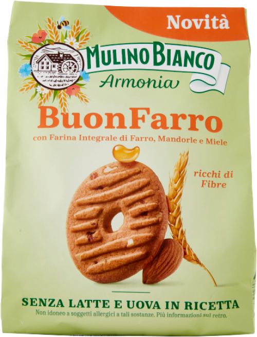 A Mulino Bianco Buon Farro tej- és tojásmentes keksz egyedi olasz finomság, mely különleges receptúrájának köszönhetően ideális választás az egészségtudatos édességkedvelők számára.
