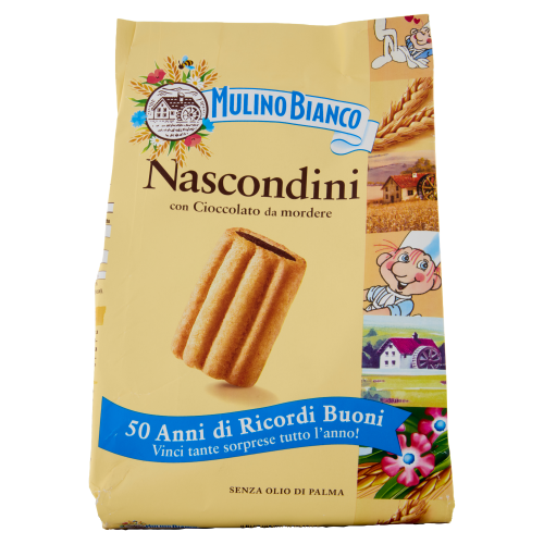 A keksz gazdag textúrájával és intenzív ízével a Mulino Bianco Nascondini egy igazi olasz ízkavalkád. Minden falat egy új gasztronómiai élményt kínál.