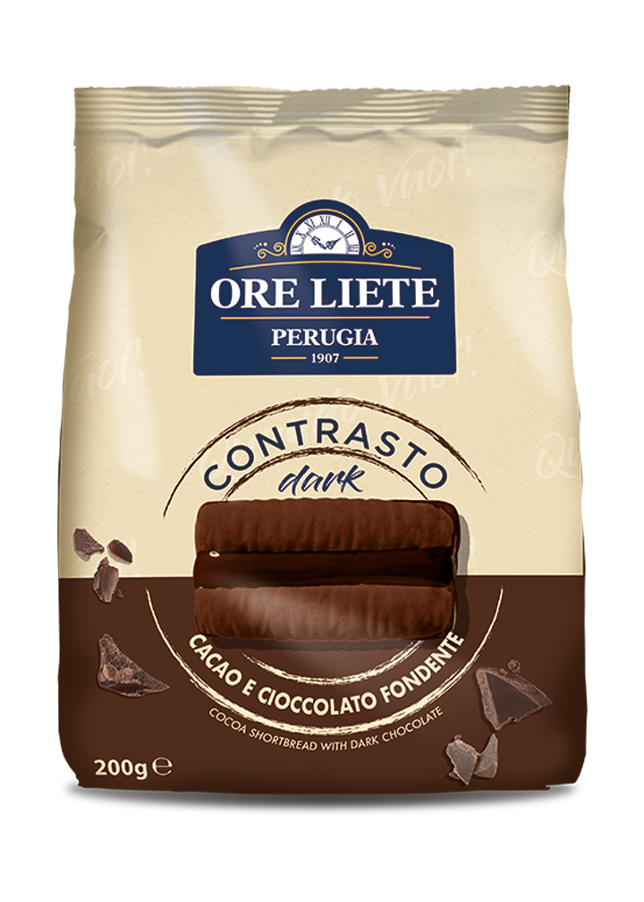 Az Ore Liete Contrasto Dark étcsokis keksz egy igazi olasz finomság, mely gazdag ízvilágával lenyűgözi az édesség kedvelőit.
