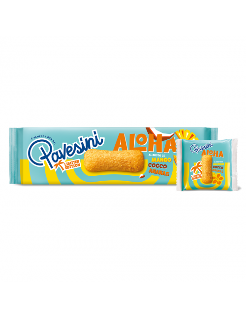 A Pavesini Aloha ananászos babapiskótát ideálisnak találjuk egy exotikus gyümölcssalátához, egy trópusi pohárkrémhez vagy akár egy különleges ananászos tortához.