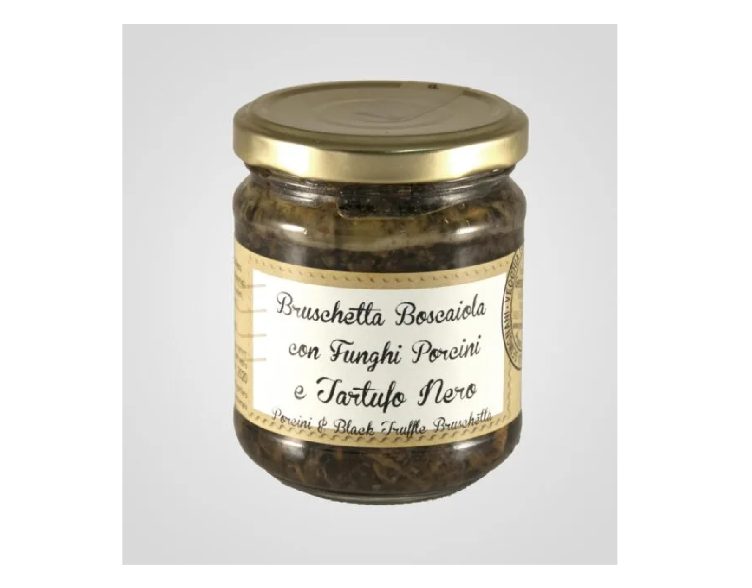 olasz csiperkegomba (65%), olívaolaj, hagyma , aromák, só , olasz fekete nyári szarvasgomba (1%), kakukkfű, vargánya gomba (10%)
