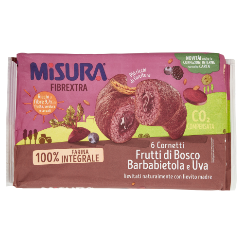 A Misura croissant erdei gyümölcs-szőlő-cékla egy ízletes péksütemény, mely friss erdei gyümölcsökkel és zamatos szőlővel van gazdagítva, egy kis céklával harmonizálva.