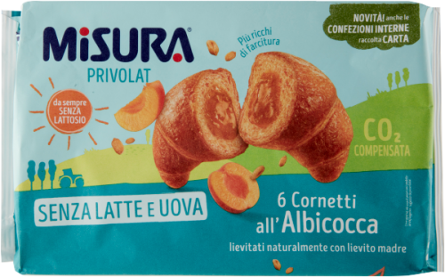 A Misura tej-,és tojásmentes cornetti sárgabarackos egyedi olasz finomság, mely tökéletes választás az egészségtudatos életmódot követők számára.