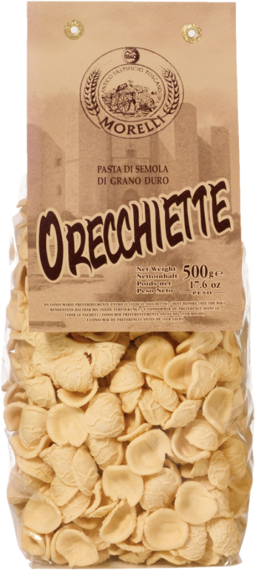 A Morelli orecchiette tészta ideális választás mindennapi és ünnepi ételek elkészítéséhez. Kiválóan passzol orecchiette broccoli e acciughe vagy orecchiette al ragù receptekhez.
