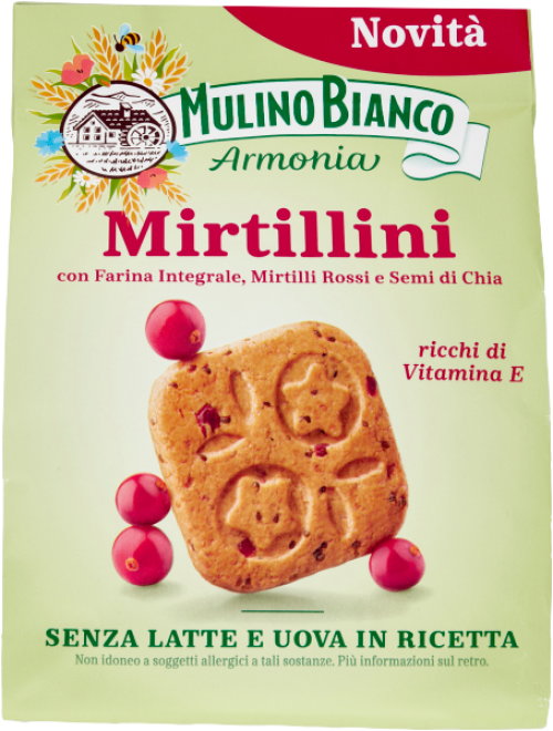 A Mulino Bianco Mirtillini tej- és tojásmentes keksz egy ízletes és könnyed édesség, mely ideális választás az egészségtudatos édesség kedvelőinek.
