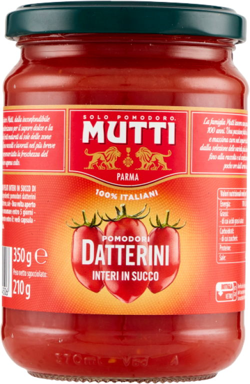 A Mutti datterini interi paradicsomszósz egy igazi olasz ínyencség, mely tökéletes választás minden gasztronómiai élvezetekre vágyónak.