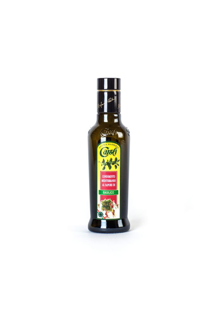 A termék prémium minőségű extra szűz olívaolajból készül, melyet friss bazsalikommal ízesítenek, garantálva ezzel az autentikus ízélményt.