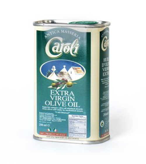 A Caroli extra szűz olivaolaj 100% olasz különleges választás az igényes gasztronómiához, amelyet egy 0,25 literes fémdobozban kínálunk.