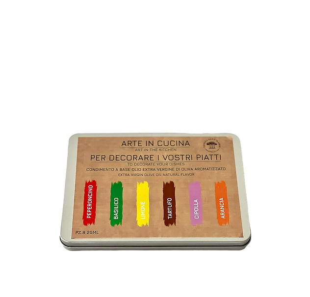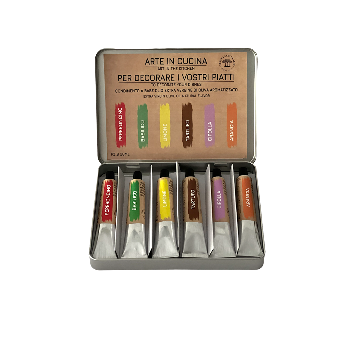 A Tenuta Arte in Cucina ízesített olívaolaj szett kiváló minőségű extra szűz olívaolajokat tartalmaz, melyek valós összetevőkből, friss alapanyagokból készülnek, garantálva az autentikus olasz ízélményt.