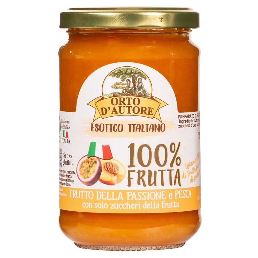 A "Orto d'Autore 100% passion fruit és őszibarack lekvár" igazi kulináris élményt nyújt minden gyümölcsös desszert kedvelőjének.
