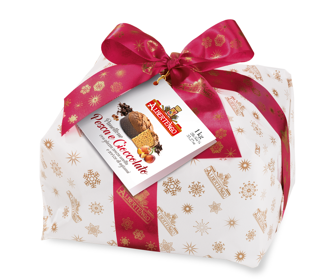 Az Albertengo panettone őszibarackos-csokoládés gazdag ízvilága harmonikusan ötvözi az őszibarack édességét a csokoládé krémességével, egyedi és felejthetetlen élményt nyújtva.