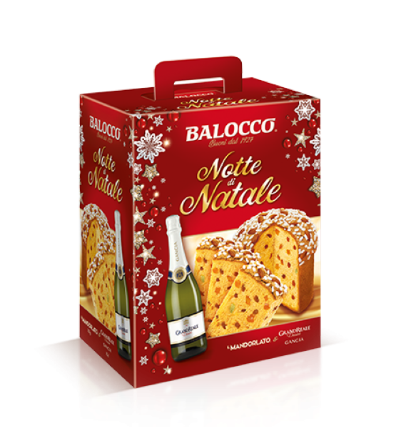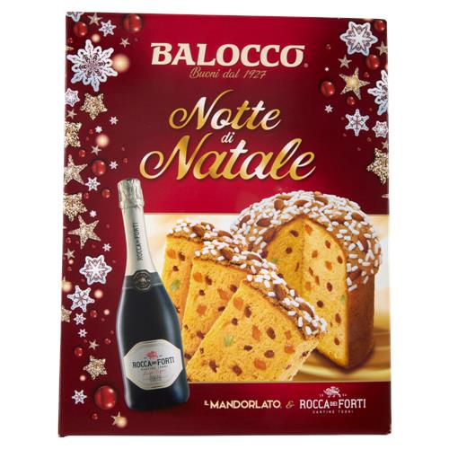 A Balocco Notte di Natale panettone mandorlato egy igazi gasztronómiai különlegesség, melyet 750g súlyú szettben, pezsgővel együtt kínálunk.