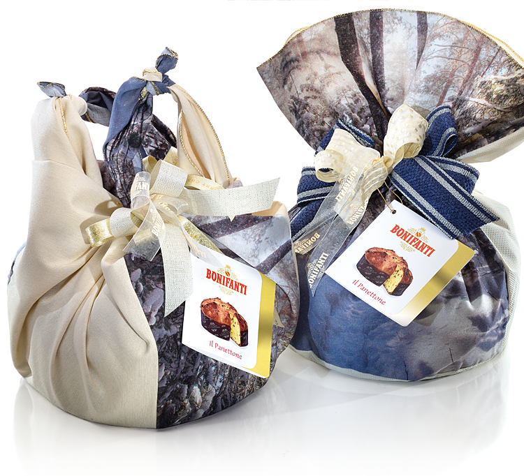 A Bonifanti panettone Milanese kék anyagban Téli táj egy igazi olasz különlegesség, mely tökéletes választás az ünnepi asztalok díszeként.