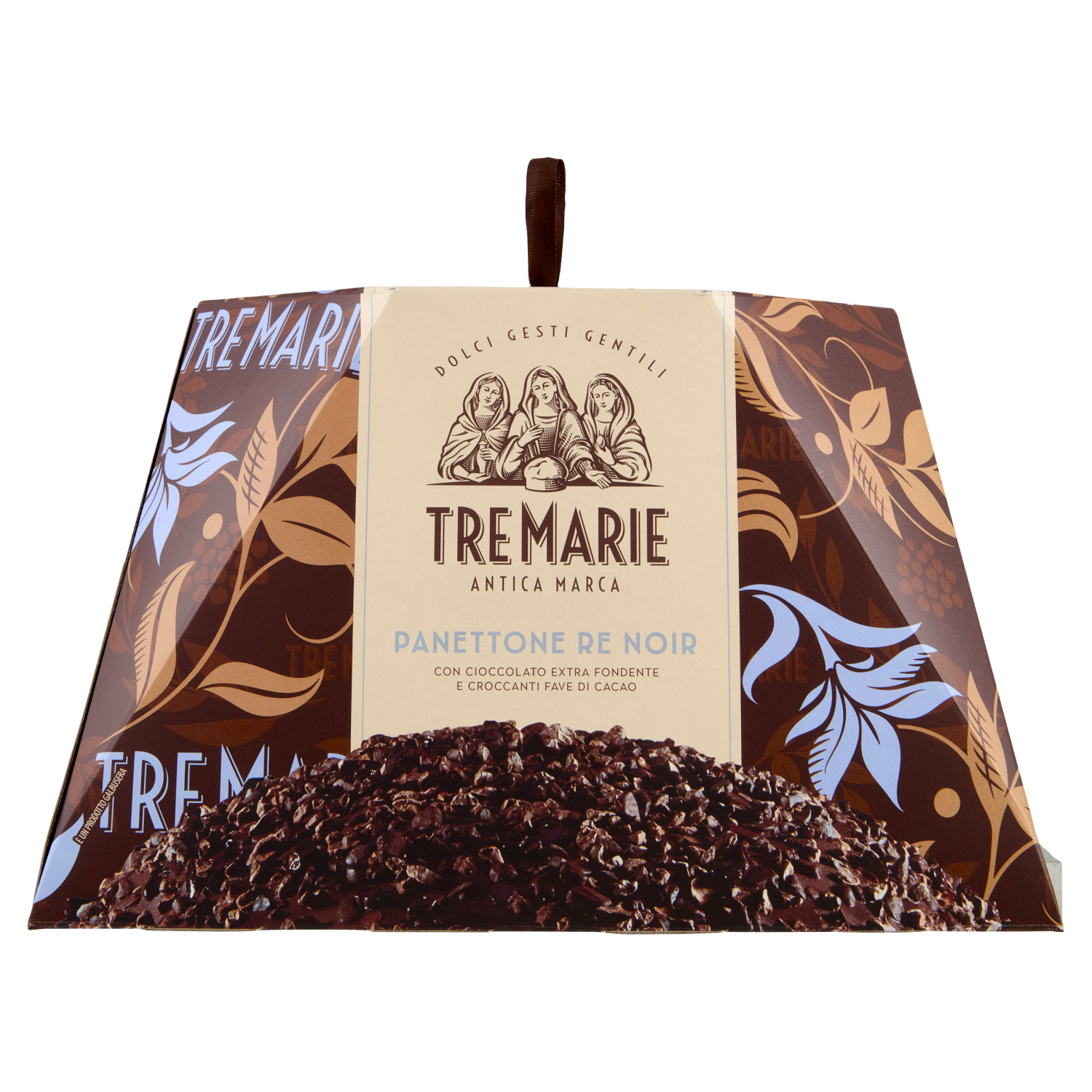 Az elegánsan csomagolt Tre Marie panettone egy igazi különlegesség, melyet étcsokoládékrémmel töltöttek és vontak be, így garantálva az ízletes gasztronómiai élményt.