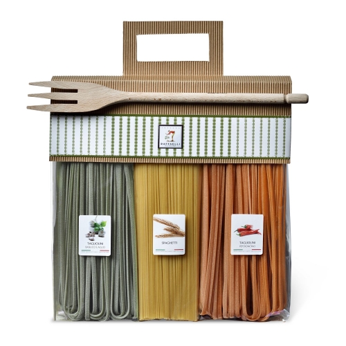 A Raffaelli ajándékszett Pastalandia egy igazi olasz gasztronómiai élményt nyújtó csomag, amely magában foglalja az olasz konyha legfinomabb alapanyagait.