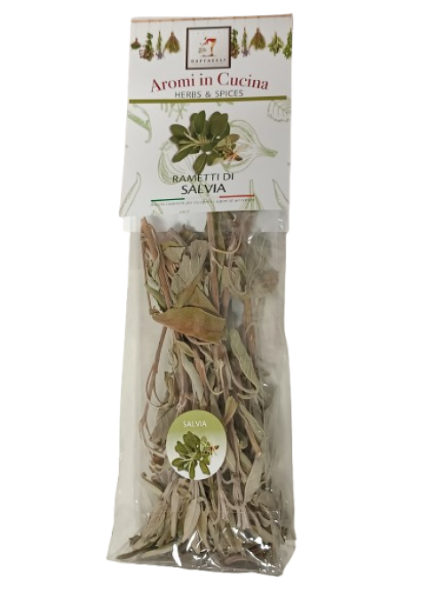 A Raffaelli egész zsálya egyedi és különleges fűszer, mely az olasz konyha elengedhetetlen része. Szárított, egész leveleivel ízesítheted ételeidet.
