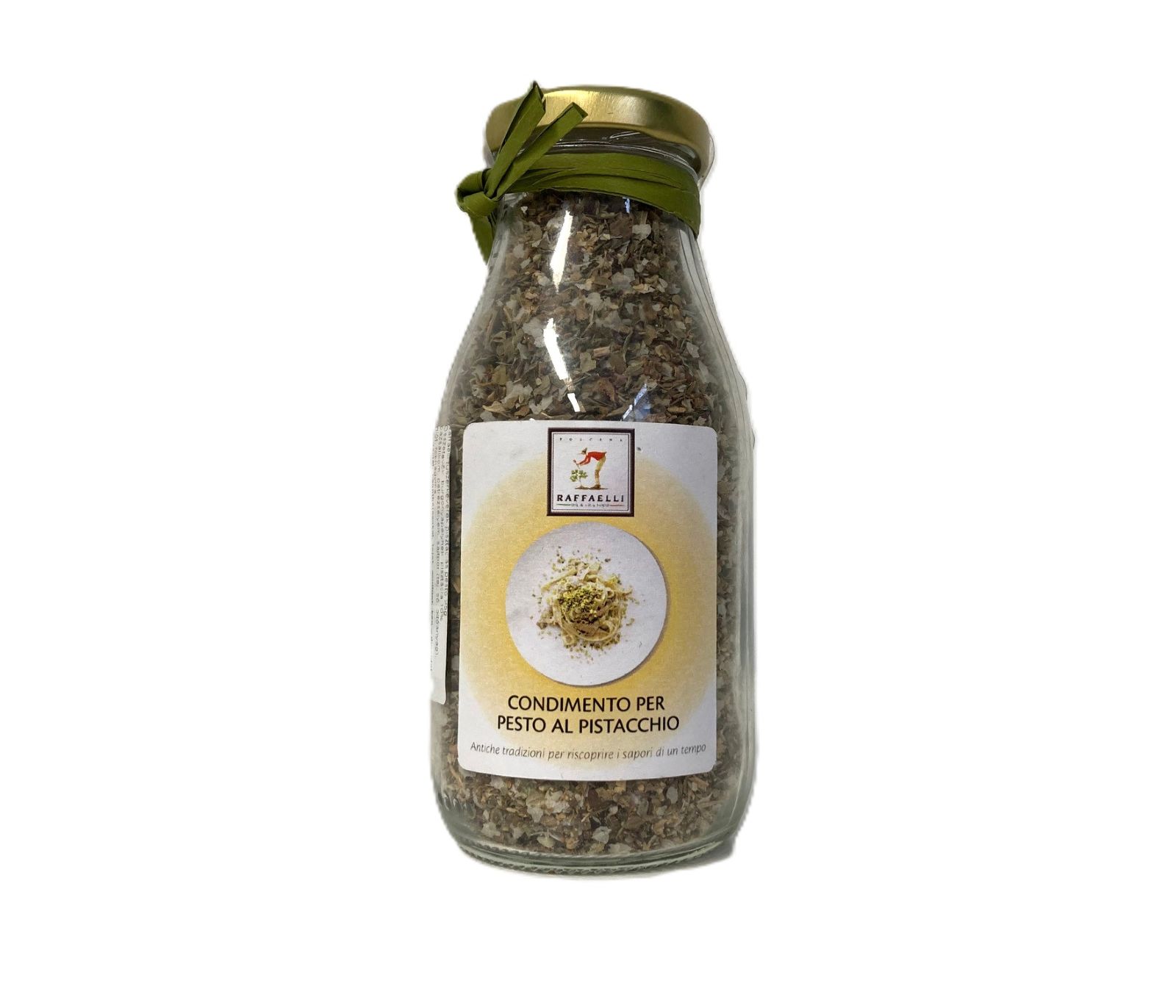 Az Raffaelli pisztáciás-pesto fűszerkeverék gazdag és intenzív ízélményt nyújt, mely varázslatosan harmonizál a friss tészták és saláták ízével.