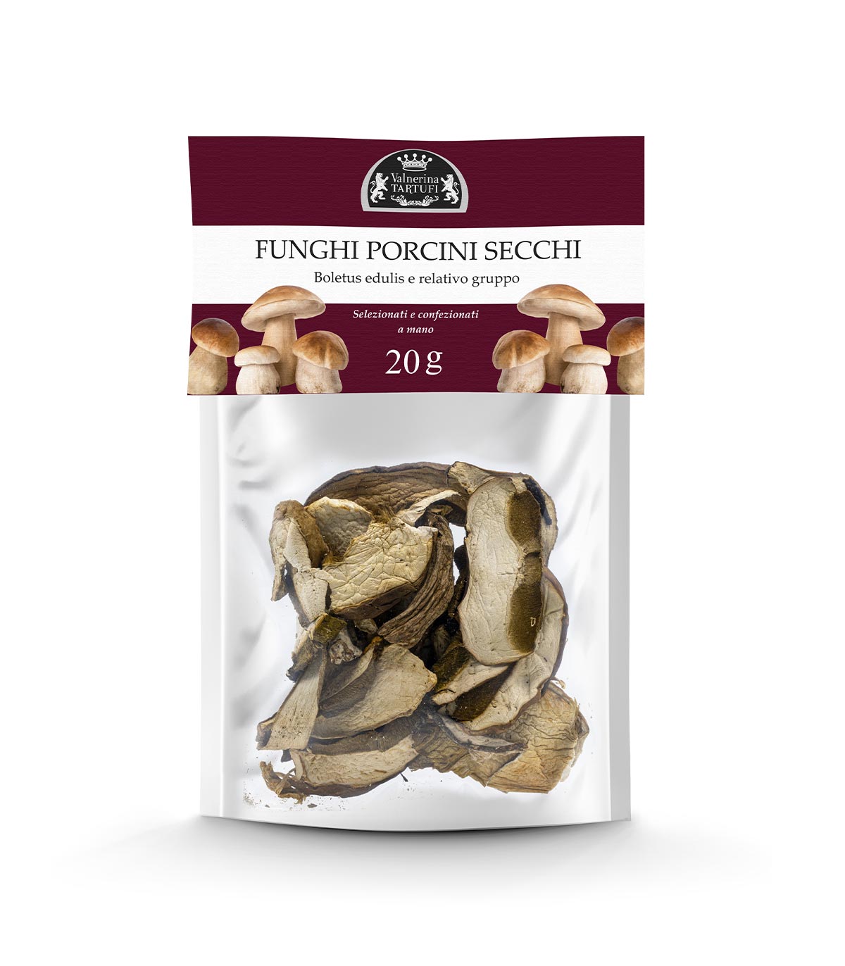 A termék kizárólag prémium minőségű vargányát tartalmaz, melyek gondos kiválasztása és szárítása garantálja az intenzív ízek és aromák megmaradását.