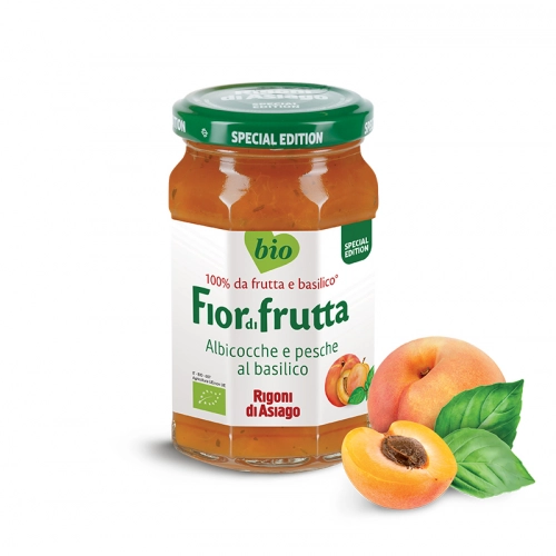 sárgabarack és őszibarack (70%), almalé koncentrátum, zselésítőanyag: pektin, bazsalikom (0,4%)