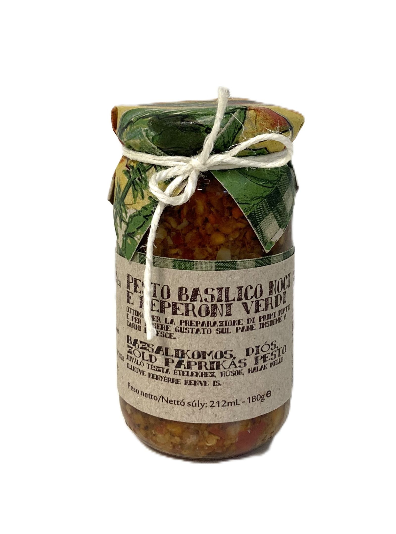 A pesto friss bazsalikommal, ropogós dióval és pikáns zöld peperonival készül, garantálva a prémium minőséget és az intenzív ízélményt.