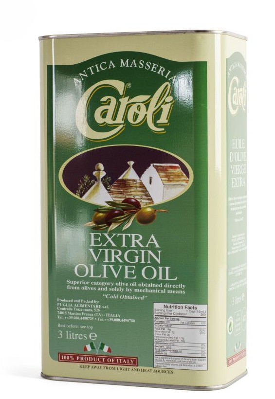 A Caroli extra szűz olivaolaj 100% olasz termék, amelyet 3 literes fémdobozban kínálunk, hogy az autentikus olasz ízek mindig kéznél legyenek.