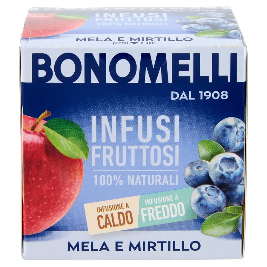 A Bonomelli alma-fekete áfonya tea 12 filteres a legfinomabb olasz összetevőkből készül, hogy egyedülálló ízélményt nyújtson.