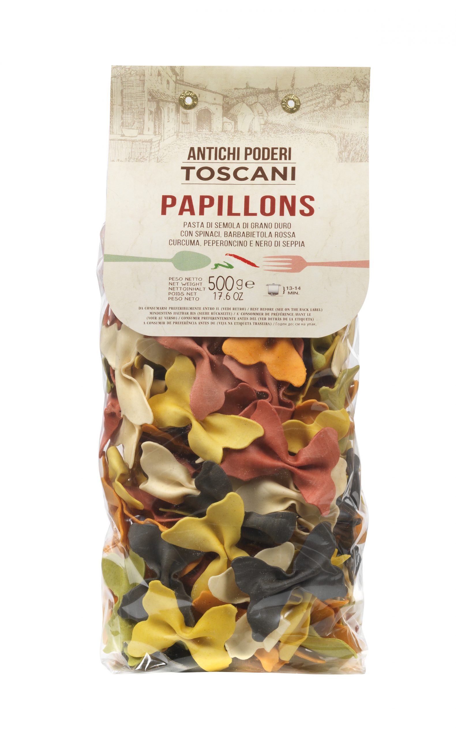 A Antichi Poderi papillon színes tészta egyedülálló olasz gasztronómiai élményt nyújt az igazi tészta kedvelőinek.