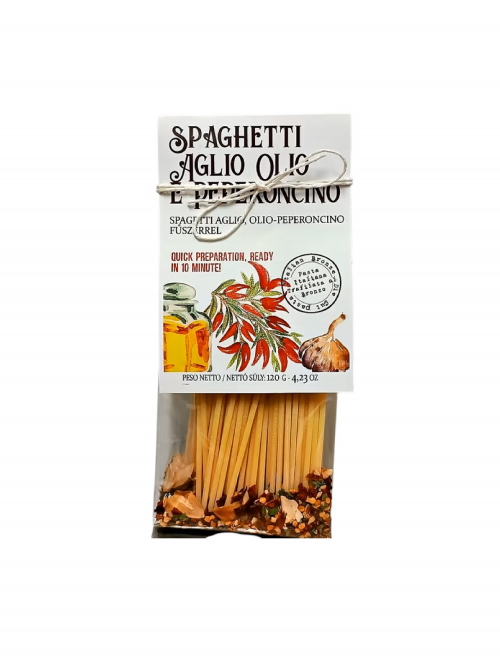 Az aglio-olio tésztacsomag gazdag és intenzív ízvilágot kínál, mely tökéletesen képviseli a dél-olaszországi gasztronómiai hagyományokat. Minden falat egy utazás a dél olasz ízek világába.