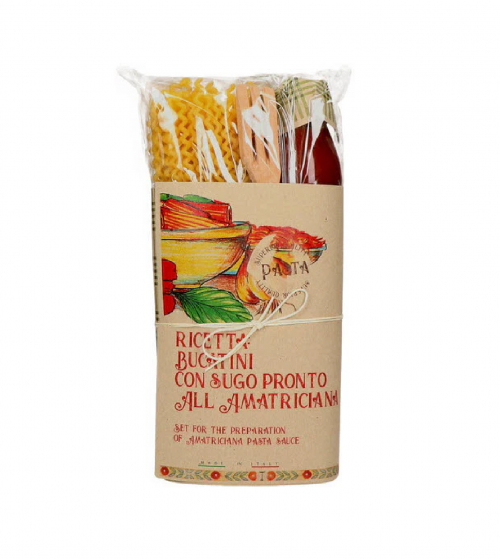 A tésztacsomag prémium minőségű alapanyagokból készül, mint például a bucatini tészta, paradicsom és szalonna, amelyek garantálják az autentikus olasz ízeket.