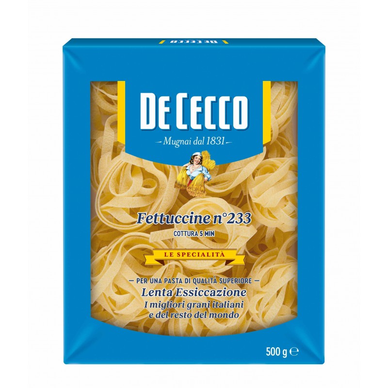 A De Cecco fettuccine tészta ízletes és karakteres, mely tökéletesen kiegészíti a legkülönfélébb olasz ételeket. Az egyedülálló ízkombináció magával ragadó gasztronómiai élményt nyújt.