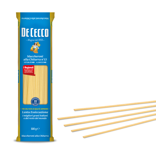 A De Cecco maccheroni chitarra ideális választás spaghetti aglio e olio, pasta alla puttanesca és lasagne elkészítéséhez is.