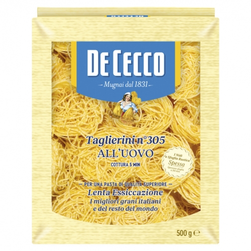 A De Cecco Nr.305 tojásos taglierini tészta egy igazi olasz remekmű, mely ideális választás az autentikus olasz konyha szerelmeseinek.