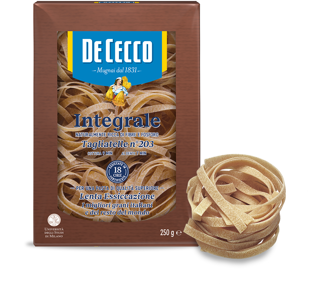 A De Cecco teljeskiörlésű tagliatelle tészta kiváló minőségű olasz tészta, melyet a hagyományos receptek alapján készítenek.