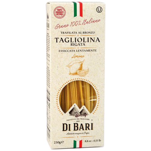 Az Di Bari citromos tagliolina tészta frissességgel és intenzitással örvendezteti meg az ízlelőbimbókat. Az illatos citrom és a selymes tészta tökéletes harmóniát alkotnak.