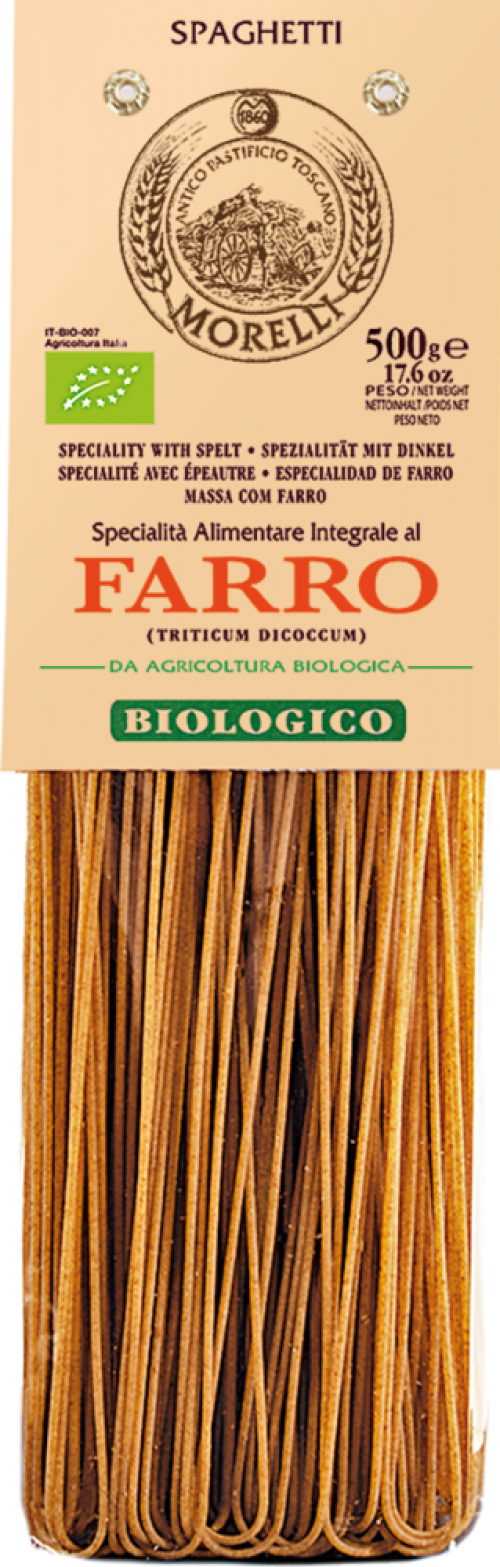 A Morelli BIO tönkölybúza spagetti egy kiváló minőségű olasz tészta, melyet prémium alapanyagokból készítenek.