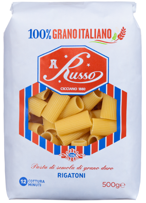 A Russo mezzi rigatoni tészta kiváló választás a tészta szerelmeseinek, az autentikus olasz ízek kedvelőinek.