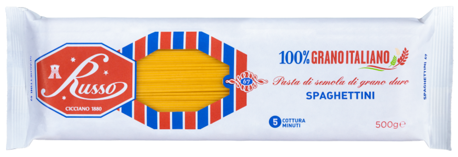A Russo spagettini tészta egy klasszikus olasz tésztaféleség, mely garantálja az autentikus olasz ízeket és minőséget.