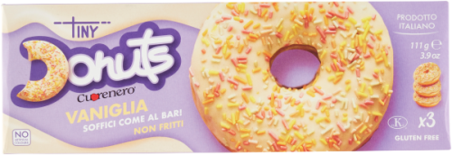 A Tiny donuts vanillás remekül passzol egy csésze forró kávéhoz reggelente. Ideális vendégváró falat vagy gyors édesség utazáshoz.
