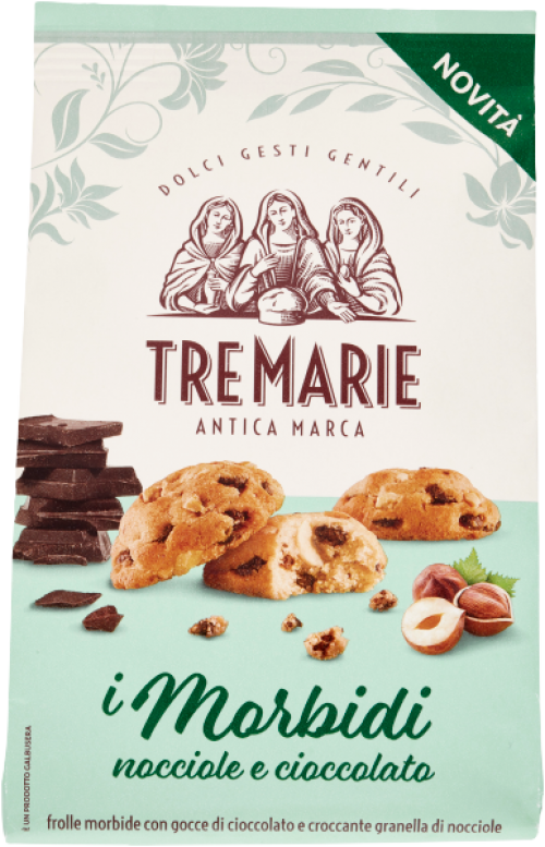 A Tre Marie Morbidi mogyorós puha keksz egy ízletes olasz finomság, mely ideális választás azok számára, akik szeretik a mogyorót és a puha, szaftos kekszeket.