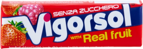 A Vigorsol Real Fruit cukormentes gyümölcs rágó friss és intenzív gyümölcsízű rágó, mely ideális választás a mindennapi frissítéshez.