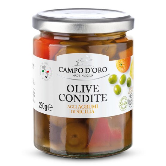 A Campo d'Oro szicíliai zöld olivabogyó szicíliai citrusokkal egy igazi ínyencség, mely tökéletesen kombinálja az olivabogyók zamatos ízét a frissítő citrusok aromájával.